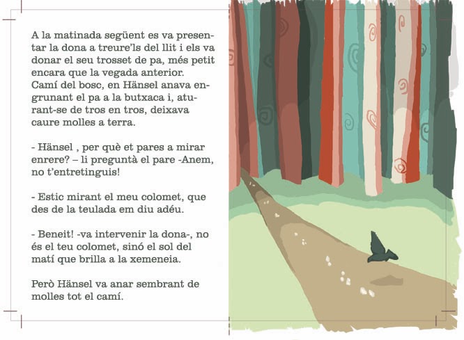 Aquest treball, ha estat una proposta per il·lustrar digitalment (photoshop) un conte clàssic, en aquest cas, Hansel i Gretel dels Germans Grimm. Les següents il·lustracions, són la portada del conte, una pàgina acompanyada per text, i una doble pàgina (amb l'opció de text o sense).